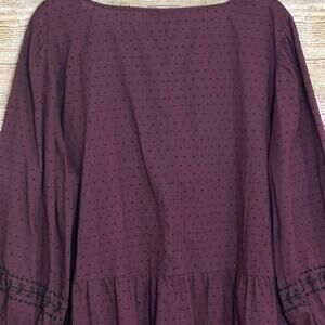 Lane Bryant Women's Top Size 20 Maroon/Burgundy Embroidered V-Neck 3/4 Sleeve