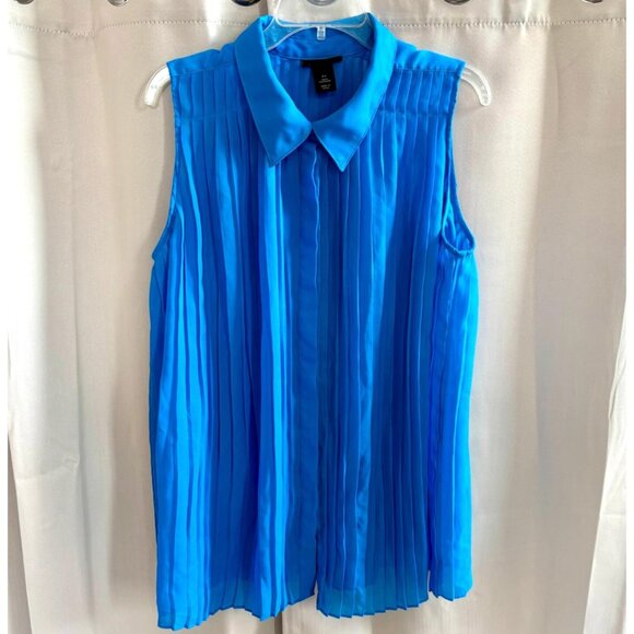 Lane Bryant Womens Top Size 24 Blue Button Up Pleated Flowy Minimalist 17801