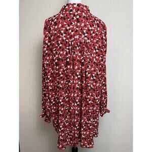 Lane Bryant Women’s Tunic Top Button Front Sz 26/28 Red W/ Black White Print