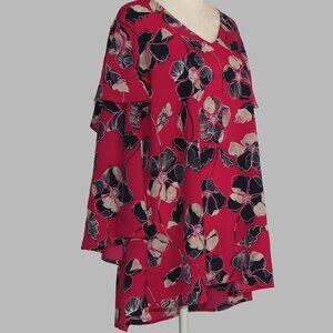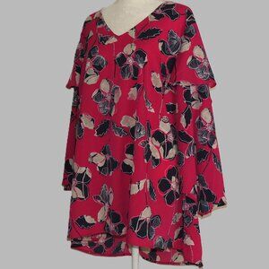 Lane Bryant Women's V-Neck Long Sleeve Pink Flowered Pullover Blouse Size 22-24