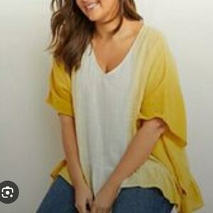 Lane Bryant Yellow White Ombre Oversized Flowy Boho Beachy Shirt Size 22/24
