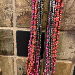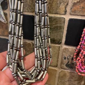 Bought for a cruise years back worn once. Really gorgeous both of them! The silver one has other beads that are hard to see in the pictures but it shines! The silver and pink coral one is gorgeous also. Paid 29 each. They are substantial nice necklaces!