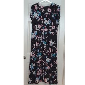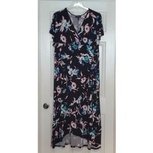 Lane Bryant black and floral maxi hi-lo faux wrap dress sz 22/24