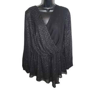 Excellent pre-owned condition. No flaws to note. Women's plus size Lane Bryant black & gold metallic peplum blouse top size 16.