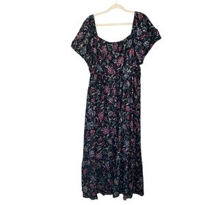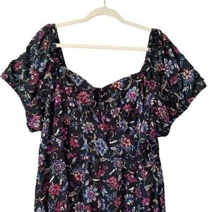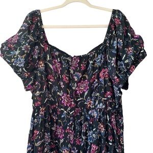 Lane Bryant black peasant milkmaid sparkly multi floral maxi dress. Size 22