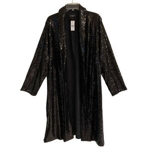 Lane Bryant black sequin long duster open front kimono jacket womens long sleeve