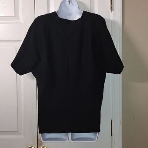 Lane Bryant black v neck ribbed wide band waist short sleeve sweater Sz 18/20
