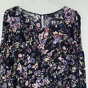Lane Bryant blouse black blue purple floral empire waist long sleeve size 26/28
