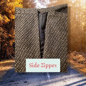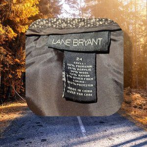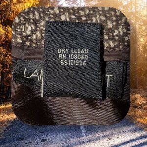 Fully lined wool flared skirt from Lane Bryant, brown & cream color. Back zipper with hook & eye closure. Made in China - Shell is 36% polyester, 35% acrylic, 14$ wool, 13% rayon, 2% other fiber; Lining is 100% polyester. Very Good Used Condition.