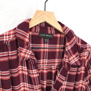 Lane Bryant button up shirt flannel long sleeved red plaid top casual 18 20 READ