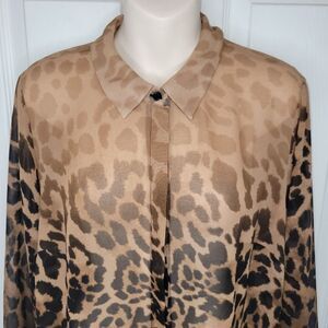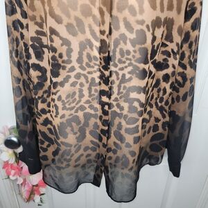 Excellent like new condition in a size 14/16. Lane Bryant cheetah/leopard animal print chiffon top. Button up with a sexy split back.
