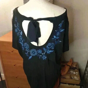 Lane Bryant embroidery with tie back black top Sz 22/24 Never worn