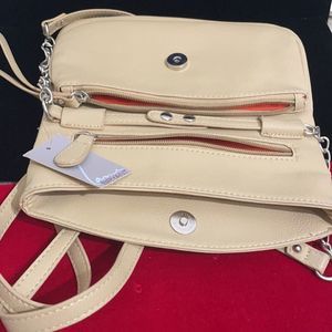This item is new with tags however has some BLUE STAINS throughout the back of clutch as pictures show. Price is set low because of staining.