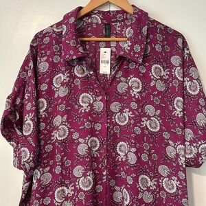 Lane Bryant floral long button down side slit tunic dress size 22/24 NWT