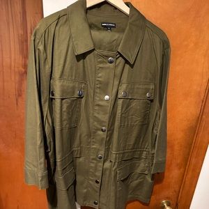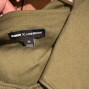 Lane Bryant glamour suit. Jacket size 26. Pencil skirt size 28. Color olive green.