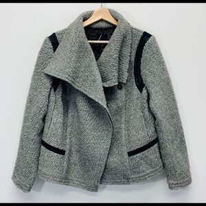 Asymmetrical zip wool blend (similar look to tweed ) moto/motorcycle jacket/coat