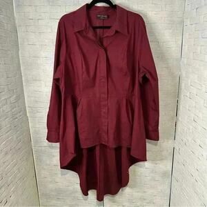 Lane Bryant high low burgundy blouse, high low button down Goth plus size