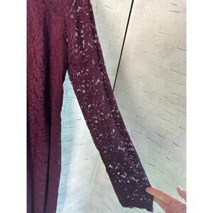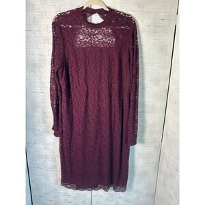 Lane Bryant burgundy lace dress long sleeve sheer sleeve dress bodcon Whimsigoth Vamp feminine knee length