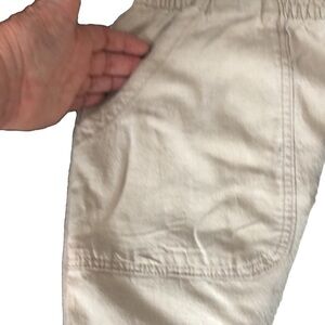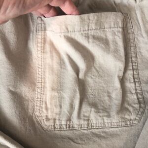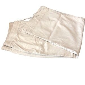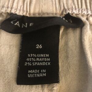 Lane Bryant linen blend pull on pants. Wide leg. Natural color. Elastic waist with adjustable draw string. Front and back pockets. Pre-owned. Very good condition. Small mark on right front pocket, shown in pictures. Size 26.