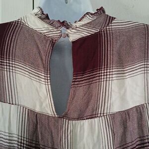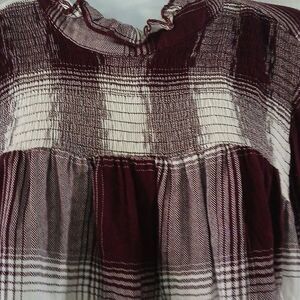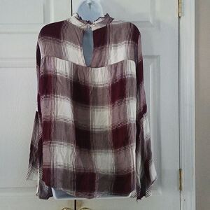 Lane Bryant maroon and white long bell sleeve top blouse Sz 14 EUC