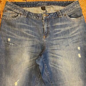 Like new Lane Bryant medium wash distressed rolled cuff Crop Capri Jeans. EUC, great shape, size 16, cotton spandex blend for stretch, approximately 27” inseam. See pictures for details.