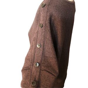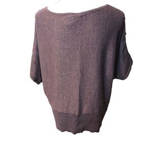 Lane Bryant bronze metallic short sleeve pullover dolman sleeve sweater size 16. Button accents across shoulder tops. Short sleeve, banded near waist line. Glitzy metallic earth tone color.