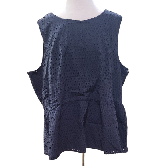 Lane Bryant navy eyelet peplum sleeveless top size 28