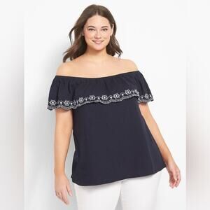 Lane Bryant off the shoulder embroidered blouse navy feminine bohemian plus size