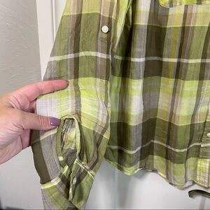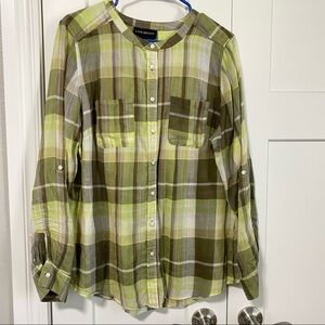 Lane Bryant plaid button down top size 14/16 light weight greens yellow