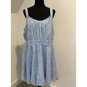 Lane Bryant plus size cotton & linen striped blue dress size 18