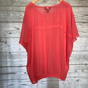 Lane Bryant salmon or coral pink sheer pleated smocked shirt