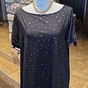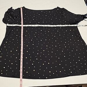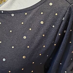 Lane Bryant short sleeve lightweight pullover top with gold metallic designs
