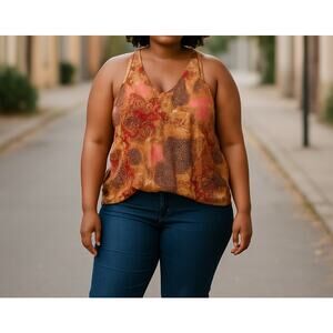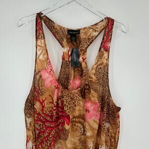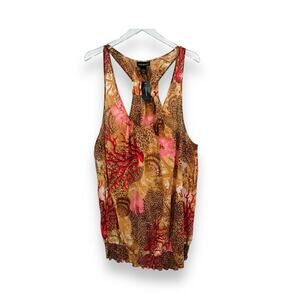 Lane Bryant silk blend racerback tank multi coral reef seashells leopard 22 NEW