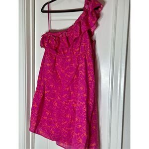 Lane Bryant size 18 pink and orange summer one shoulder dress