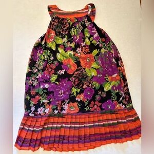 Lane Bryant sleeveless floral & striped pattern dress w/pleated hem. Sz-14. X14
