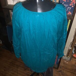 Lane Bryant teal embroidered flowy 14 peasant blouse