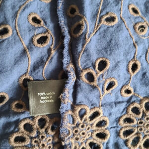 Lane Bryant womens Blouse Sz.18 Embroidered Floral Ruffle blue color