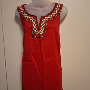 Lane Bryant women's tank top red embroidered neck cotton size 24 lightweight