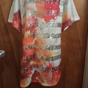 Lane Bryant women's white pink sequined blouse top bling floral print size 22/24