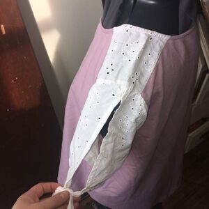 Lane Bryant lace sleeve, light purple, comfortable blouse. The main bodice is sweatshirt like material. Eyelet lace sleeves. In good, gently used condition. Approximately 25 inches from armpit to armpit, 30 inches long. From a pet and smoke free house. Happy to bundle!