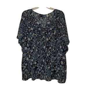 Lane Bryant Black Floral Relaxed Blouse