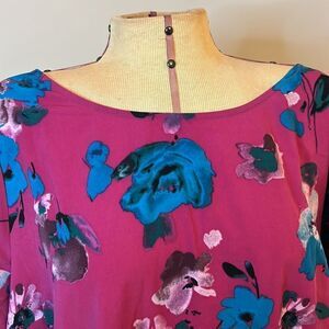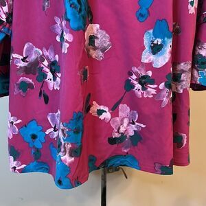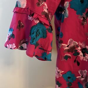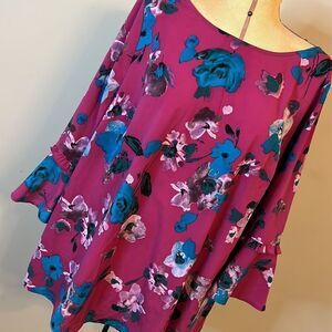 Lane Bryant Fuchsia Floral Print Ruffle Sleeve Blouse - Size 16