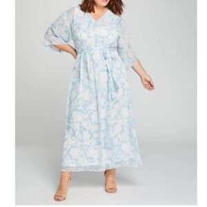 Lane Bryant Light Blue Floral Chiffon Like Lightweight Maxi Dress sz 22
