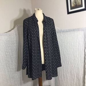 Black & White abstract modern print button down shirt blouse. Pre-owned in good condition. Please refer to pictures for best description and condition verification.