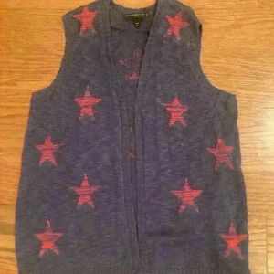 Lane Bryant Red Blue Star Print Open Front Sleeveless Cardigan size 14 size 16