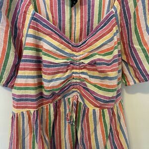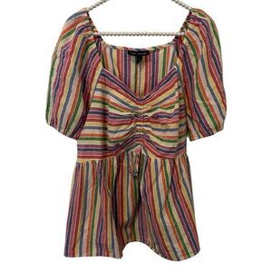 Lane Bryant Ruched Front Rainbow Stripe Babydoll Top Woman Plus Size 14 Y2K boho