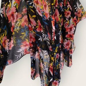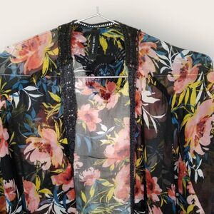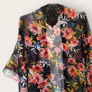 Lane Bryant Semi Sheer Swimsuit Cover Up Crochet Tropical Floral Black Beachy