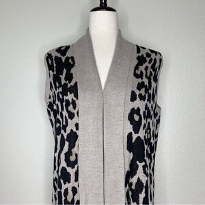 Lane Bryant Wool Blend Leopard Sleeveless Duster Open Front Long Cardigan