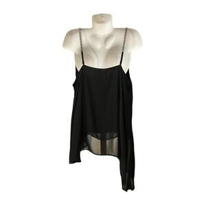Lane Byrant Women's Black Asymmetrical Chain Strap Layered Chic Blouse SZ 22/24