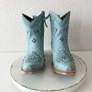 Lane COSSETTE Ladies Cowboy Bootie 7 Blue Leather Cowgirl Western Short Boots